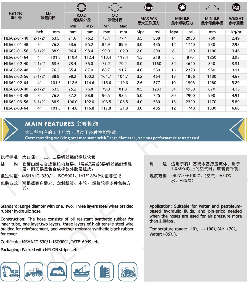 產(chǎn)品用途:適用于石油基或水基液壓流體,用于1.0MPa以上的空氣時(shí),軟管需針刺。