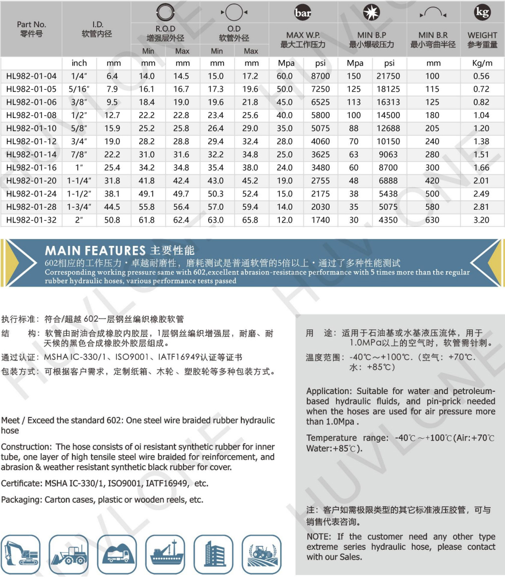 符合/超越602一層鋼絲編織耐磨橡膠軟管