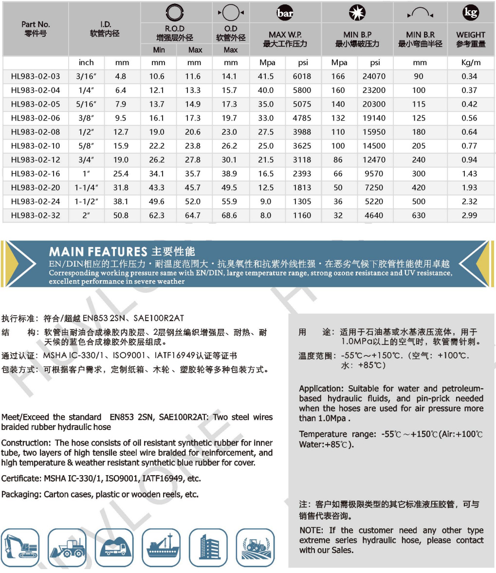 符合/超越EN853 2SN/SAE100R2AT二層鋼絲編織耐高低溫橡膠軟管