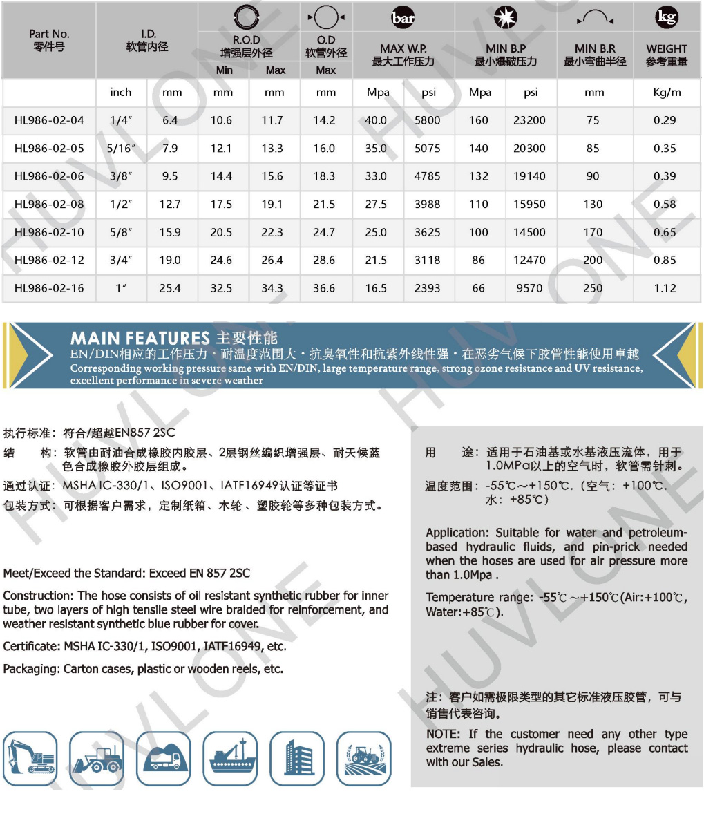 產(chǎn)品用途:適用于石油基或水基液壓流體,用于1.0MPa以上的空氣時(shí),軟管需針刺。