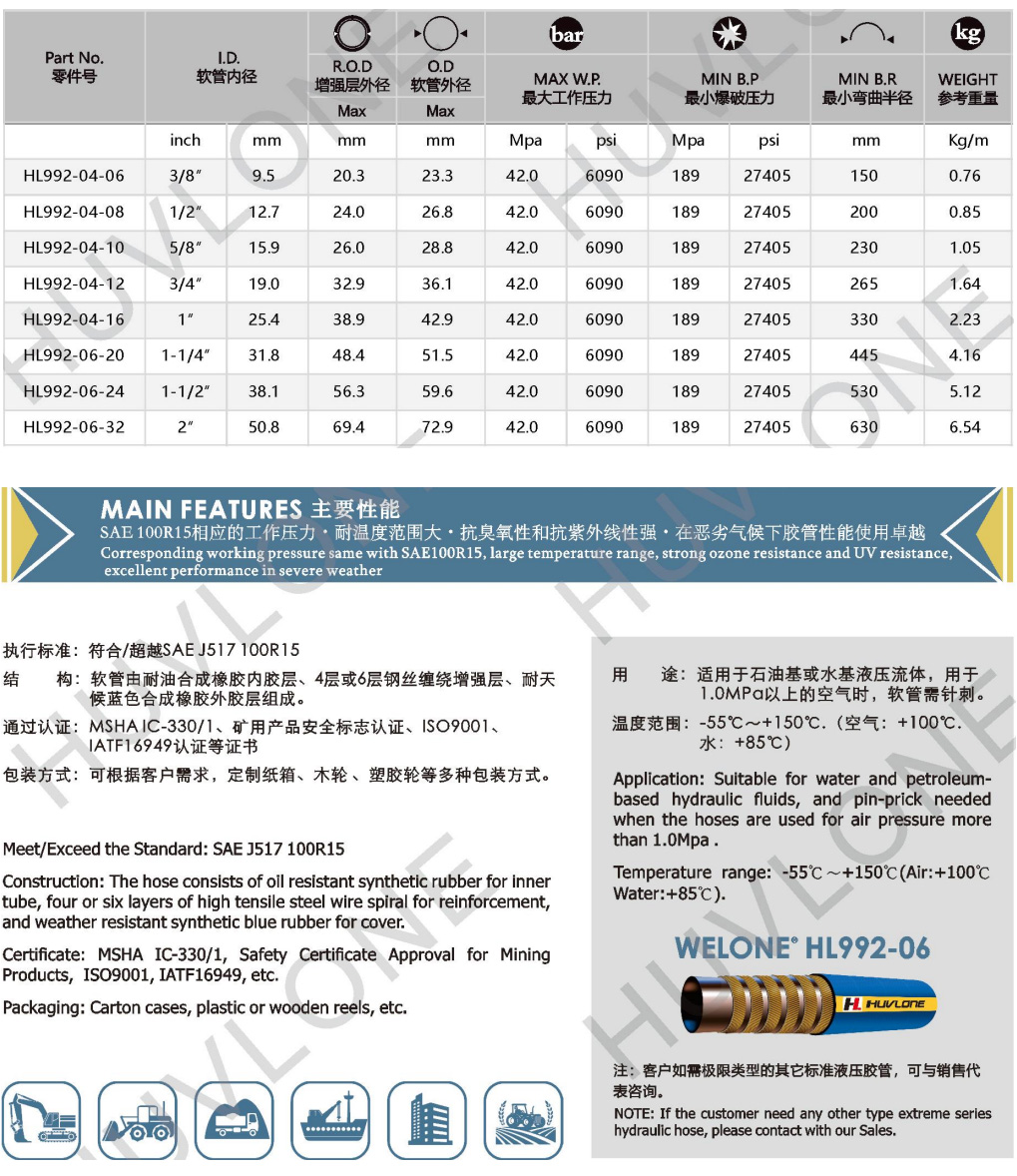 產品用途:適用于石油基或水基液壓流體,用于1.0MPa以上的空氣時,軟管需針刺。