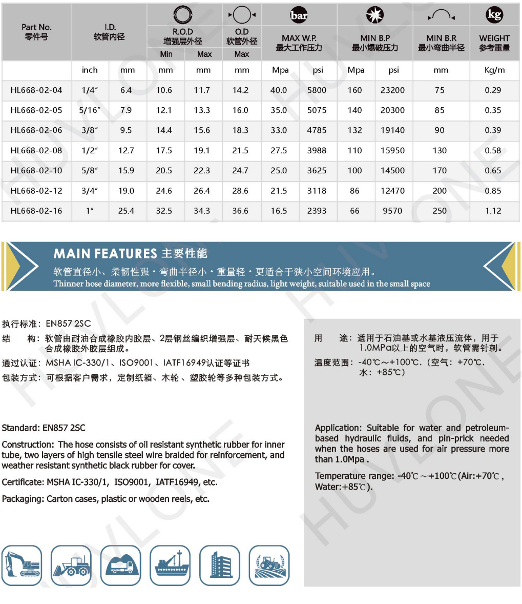 Product Usage:Suitable for water and petroleum-based hydraulic fluids,and pin-prick needed when the hoses are used for air pressure more than 1.0Mpa.