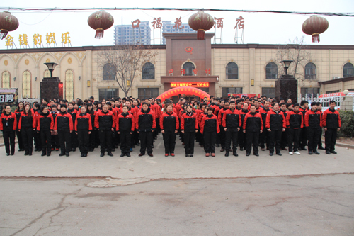 公司全體員工統(tǒng)一著裝,提前到達(dá)酒店并拍照留念。
